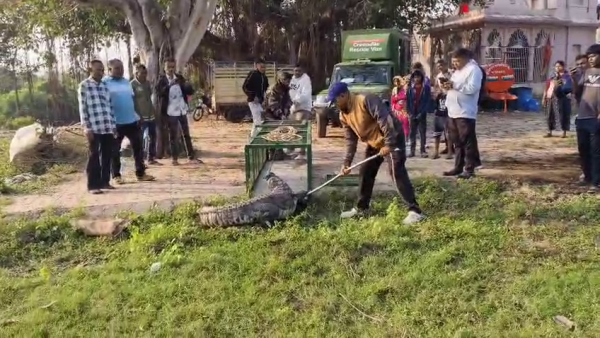 - મહાકાય મગર જોઈ લોકોમાં ભારે ફફડાટ ફેલાયો હતો, વનવિભાગને કરતા તાત્કાલિક ટીમ દોડી આવી હતી અને ભારે જહેમત બાદ 10 ફૂટના મહાકાય મગરનું દિલધડક રેસ્ક્યુ કર્યું હતું