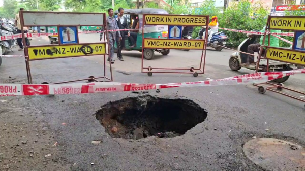 પાલિકા તંત્ર દ્વારા તાજેતરમાં જ આ જગ્યાએ કોઈ કારણે ખોદાણ કરવામાં આવ્યું હતું ત્યારબાદ રોડા- છારુ નાખીને આ ખાડો પૂરી દેવાયા બાદ ઉપર કપચીવાળો ડામર નાખીને રોલર ફેરવી દેવાયું હતું. આમ સ્માર્ટ સિટી કહેવાતું વડોદરા ફરીવાર એક વખત હવે ભુવા નગરી તરીકે જાણીતું બની જાય તો નવાઈ નહીં.