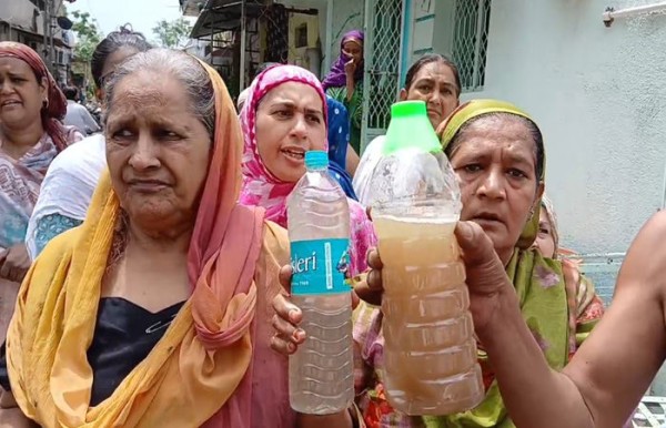 - ડ્રેનેજ મિશ્રિત કાળા રંગનું દુર્ગંધુયુક્ત પાણીની બોટલો બતાવી વિરોધ પ્રદર્શિત કર્યો