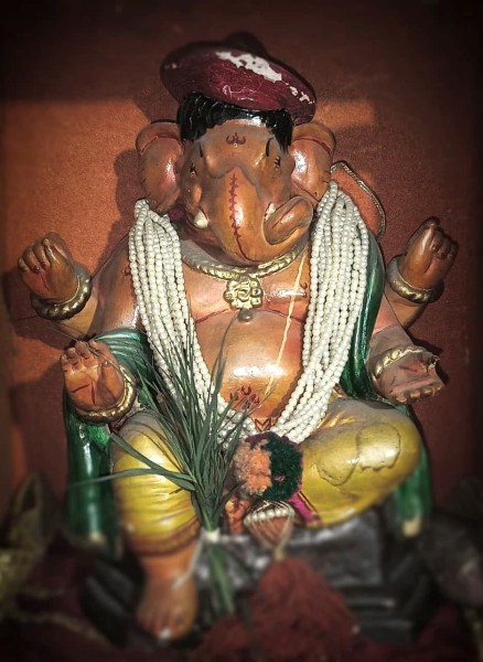 રાજમહેલ રોડ વિસ્તારમાં આવેલાં કુમેદાન ફળિયામાં રહેતું ધાડણકર પરિવાર છેલ્લાં ૧૫૦ વર્ષથી શ્રીજીની એક ફુટની માટીની પ્રાચીન મૂર્તિ પ્રસ્થાપિત કરે છે. જે વિશે માલતી રત્નાકર ધાડણકરે જણાવ્યું હતું કે, અમારે ત્યાં ૭ પેઢીથી ગણેશોત્સવમાં આ જ મૂર્તિ પ્રસ્થાપિત કરાય છે. મારા સસરાના પિતાના પૂર્વજો બાળપણથી આ મૂર્તિની પૂજા કરતાં હતા. આ મૂર્તિની વિશેષતા એ છે કે, આ મૂર્તિ માટીની બનેલી છે. અગાઉ તેના પર ઈકોફ્રેન્ડલી એટલે કે નેચરલ કલરથી રંગરોગાન કરાયું હતું. પરંતુ સમય જતાં તે ઝાંખા પડવા લાગ્યાં, તેથી અમે તેના પર ઓઈલ પેઈન્ટ કલર કરાવડાવ્યું હતું. જો કે, તેને પણ ૩૦ વર્ષનો સમય થઈ ગયો છે.