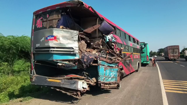 મુંબઈ-અમદાવાદ નેશનલ હાઇવે પર એક લક્ઝરી બસમાં પાછળથી આવતી અન્ય બસ ભટકાઈ હોવાનું જાણવા મળ્યું છે. આ ઘટના સુરતથી રાજકોટ તરફ જતી બસો વચ્ચે બની હતી. અકસ્માત બાદ ઘાયલોને તાત્કાલિક ટોલ એમ્બ્યુલન્સ દ્વારા નજીકની હોસ્પિટલમાં સારવાર માટે ખસેડવામાં આવ્યા હતા. સ્થાનિક પોલીસ અને બચાવ ટીમે ઘટનાસ્થળે પહોંચીને તપાસ હાથ ધરી છે. આ ઘટનાને કારણે હાઇવે ઉપર થોડા સમય માટે ટ્રાફિકજામની સ્થિતિ સર્જાઈ હતી.